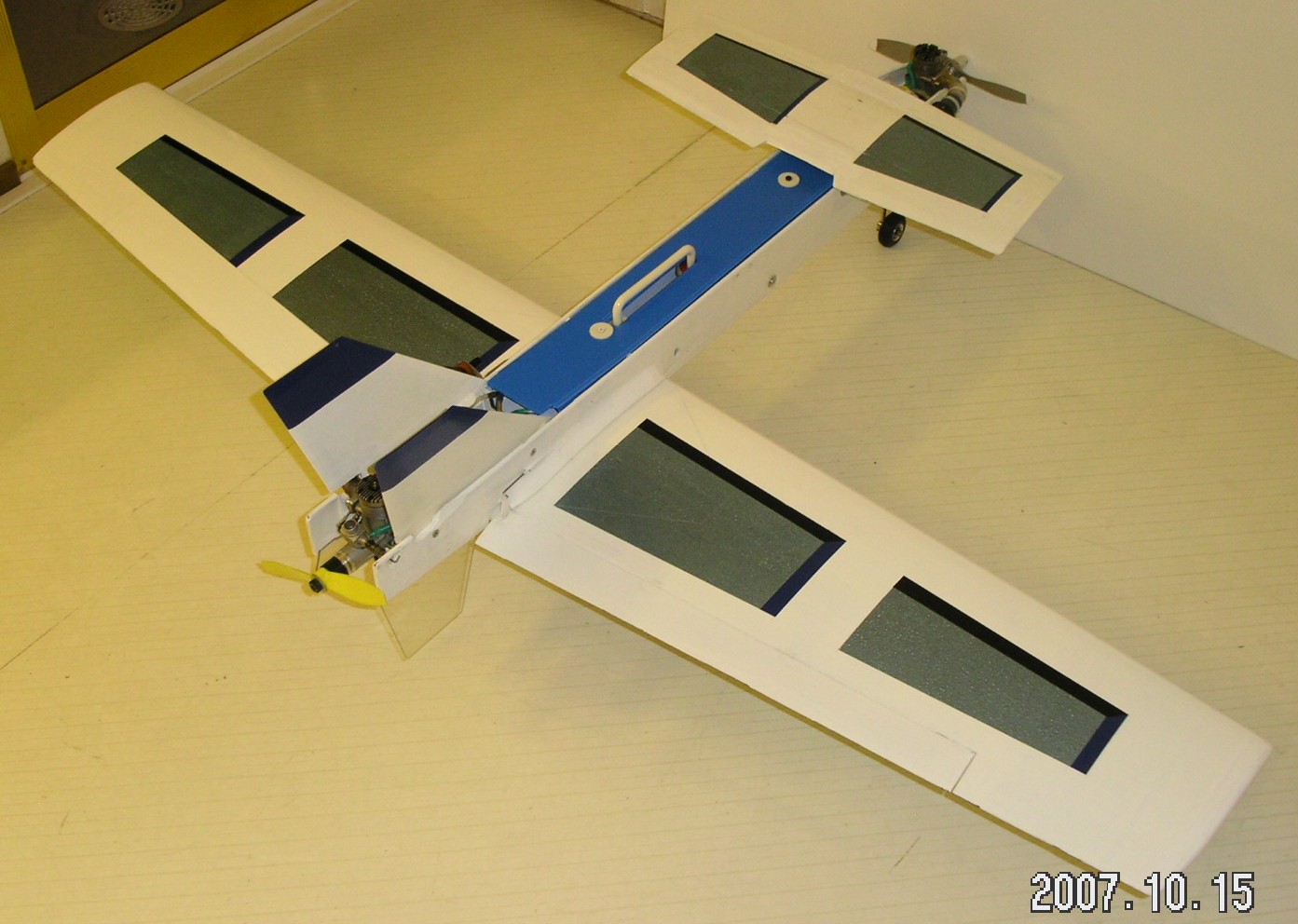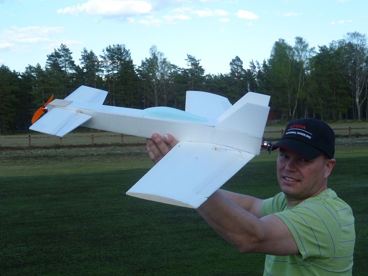 Det var spännande att provflyga den färdiga depronmodellen som väger knappt 200 gram.