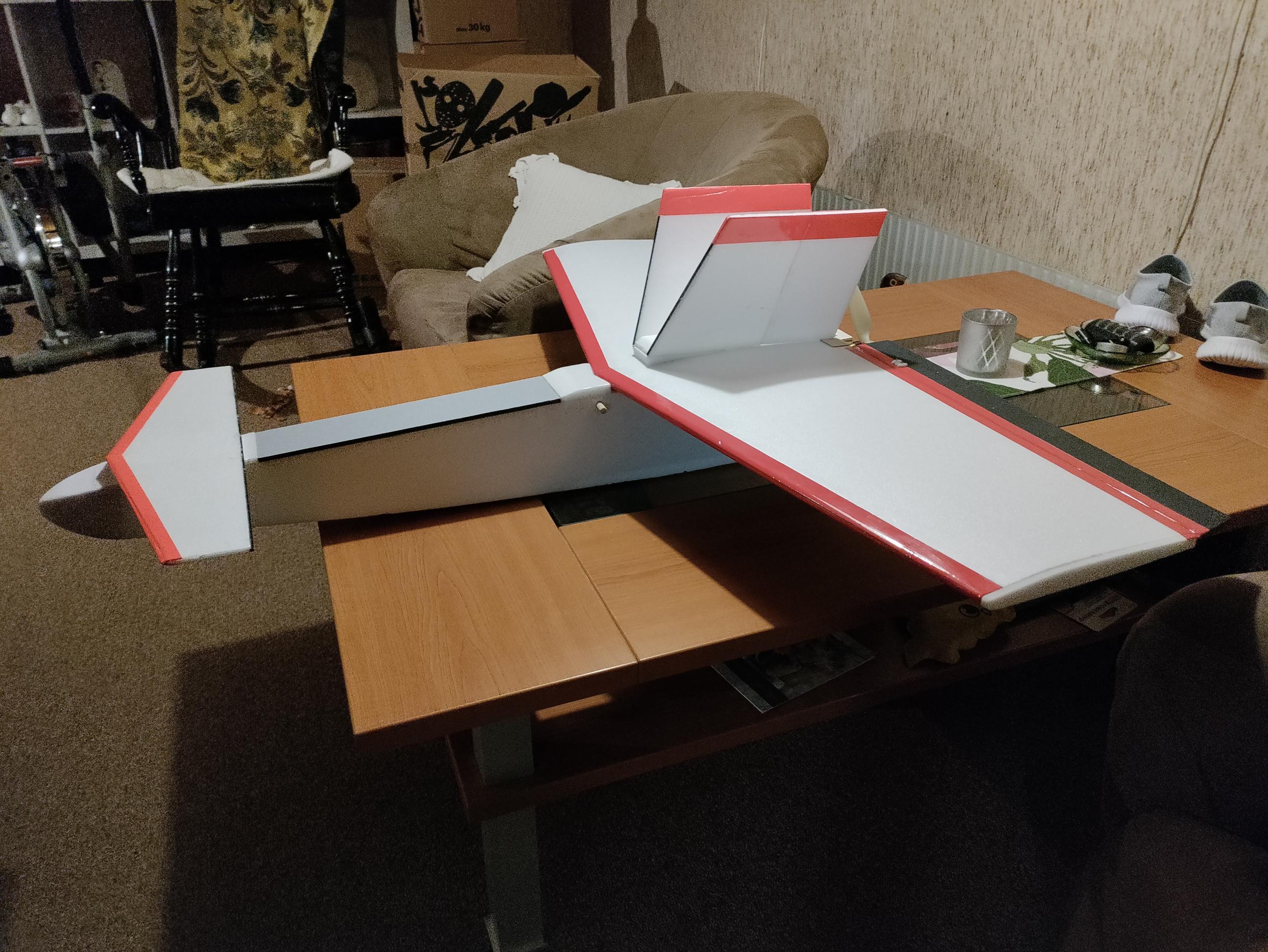Jag brukar räkna på de båda vingytorna så får jag TP på ett ungefär. Sen flyttar jag fram en aning för att säkert få lite framtungt. En canardseglare är ju självstabil. Om farten sjunker så droppar nosen så att farten ökar och stabiliserar planet.