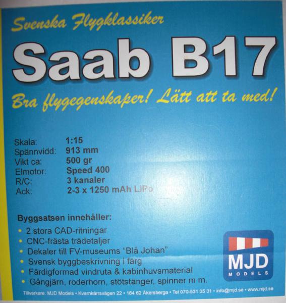 Nån som vet nån bra ritning till SAAB B17 man kunde bygga efter. En modell i skala 1:6 som ger en spännvidd på ca 2,2-2,3 meter vore ganska lagom. Vet att MJD models har en liten B17 för eldrift med 91 cm spännvidd men jag tänkte mig en modell för ca 20-25 cc 4-taktare. Man kanske kunde förstora upp den ritningen ca 2,5 gånger i och för sig men det kanske inte är så snyggt rent copyrightmässigt...