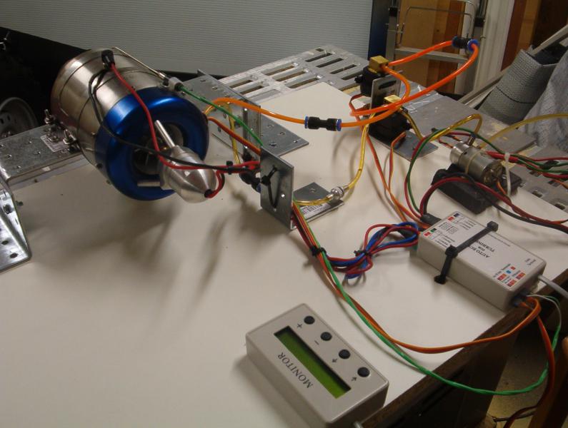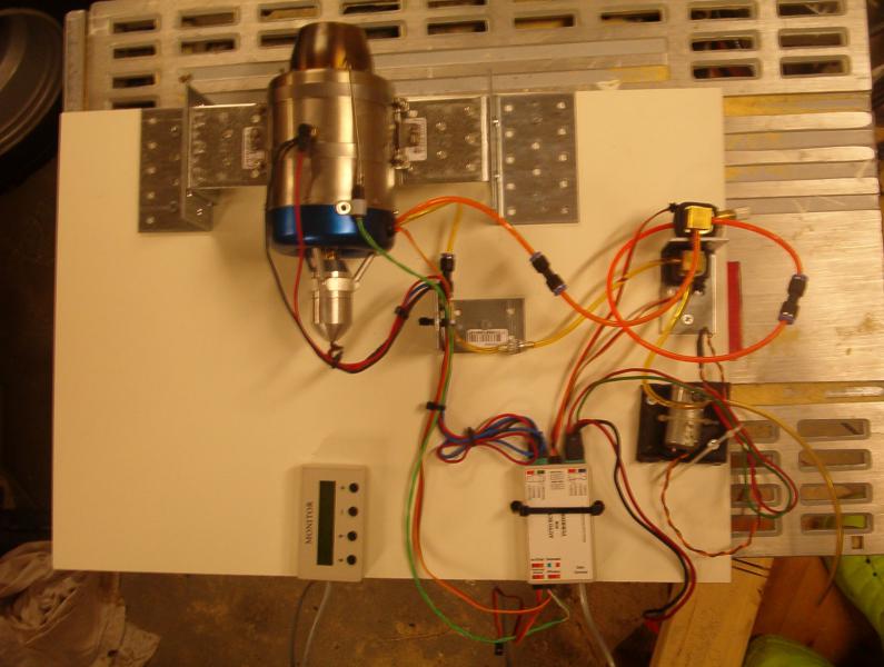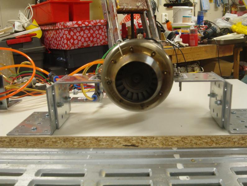För att nu lyfta idiot tråden kommer här en liten uppdatering om vad som hänt under dagen. Tycker och tror också att denna tråd skulle fungera alldeles utmärkt, för att låta intresserade få ställa allehanda mer eller mindre dumma frågor gällande just detta ämne JETFLYG. Själv kommer jag ta tillfället i akt att få göra just detta. Jag tar gärna på mig Dumborollen som ovetande och informationstörstande rookie. Tror att många ute i landet, liksom jag skulle vilja testa på just detta med JET. I bland tror jag dock att man gör an höna av en fjäder. Tycker att initiativet till Rookie helgen i April blir en utmärkt möjlighet för dom redan idag befintliga RC jetpiloterna i landet att sprida sin kunskap i ämnet, när det gäller säkerhet men också när det gäller glädje, teknik och kompiskap i ämnet. Jag vet att dom flesta nuvarande jetpiloterna finns på www.jetsweden.se , men för att öka bredden på fotogen jetandet kanske denna tråd kan fungera som en introduktion och intresseväckare. Det verkar ju faktiskt som att många av Sveriges nuvarande Jet piloter också kollar på vad som händer även i detta forum. Jag kommer förmodligen att ställa en del mer eller mindre knäppa frågor framöver, och hoppas att Ni med kunskap pallar med att svara på dom. Vi kan väll säga så här, låt det vara högt till tak. Vad har då hänt idag? Jo JJ-1400 har riggats upp på en testplatta för att inom några dagar kunna teststartas. Här kommer då direkt några frågor.