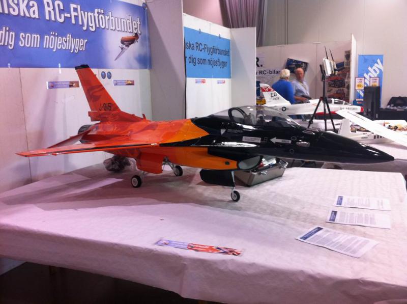 Generic-Fly's F-16: Spännvidd 240 cm, längd 368 cm, vikt ca 25 kg.