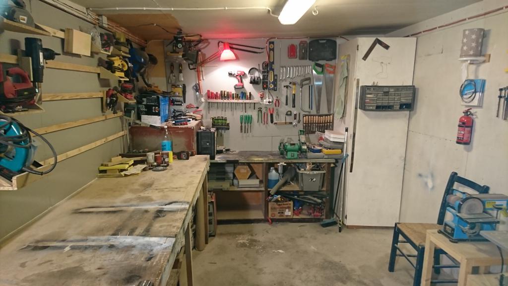 Fint och ändamålsenligt hobbyrum. Det är allt bra att ha ett hobbyrum där man har små arbetsplatser för t ex bygge, lödning, laddning osv och att man kan ha det mesta liggande framme eller hängande på väggen för enkel åtkomst. Har själv ett kombinerat kontors- och hobbyrum - ibland är det rent och snyggt med få grejer framme men när jag t ex jobbar med en ny modell blir det grejer högt och lågt i rummet. Jag har ett något mindre rum i källaren där jag har planer att ha ett hobbyrum med allsköns prylar man behöver, och ha dem framme för snabb och enkel åtkomst. Det är en del pyssel att iordningställa ett nytt hobbyrum, men sätter man bara igång så... Jag skulle vilja ha dedikerade platser med t ex pelarborr, liten bandsåg, lövsågmaskin, liten planslip, lödstation, laddstation, byggbord (flera mobila så man kan bygga flera delar parallellt, och hänga undan när de ej används). Garaget, som är större, vill jag ej "offra" för hobbyrum. Näväl, nuvarande hobby-/kontorsrum funkar i och för sig för mig men att behöva ta fram och sen plocka undan grejer stup i kvarten när man är klar är nackdelen och lite irriterande (i-landproblem...).